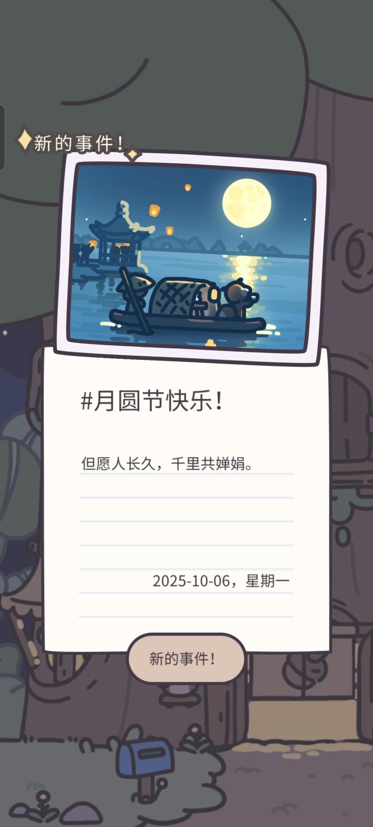 2.《月圆节快乐》2025.10.06中秋节这天收到爷爷发来的中秋想念小松的邮件后触发;