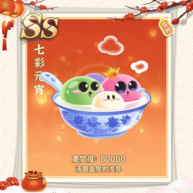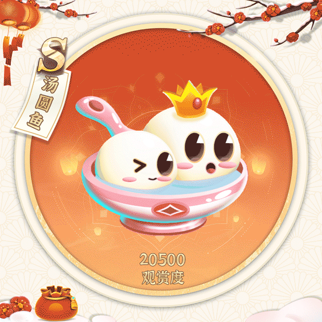 元宵节活动将在2.11-2.13日开启,受节日氛围所影响,汤圆鱼在活动期间团聚后将会变化出多种色彩,