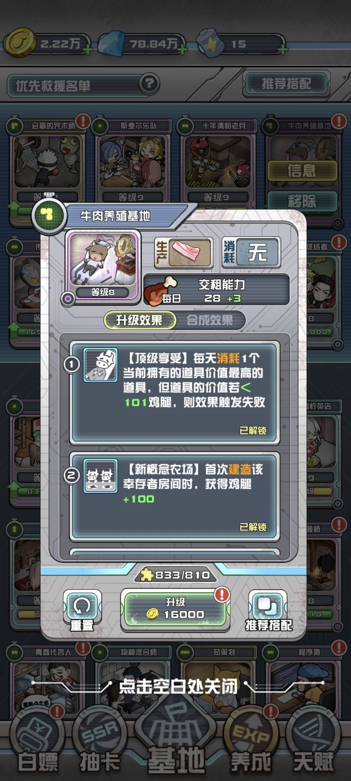 ⚠️牛牛的产出主要是消耗牛肉产出的鸡腿,他的基础产出是不高的 (建议搭配丧尸使用)