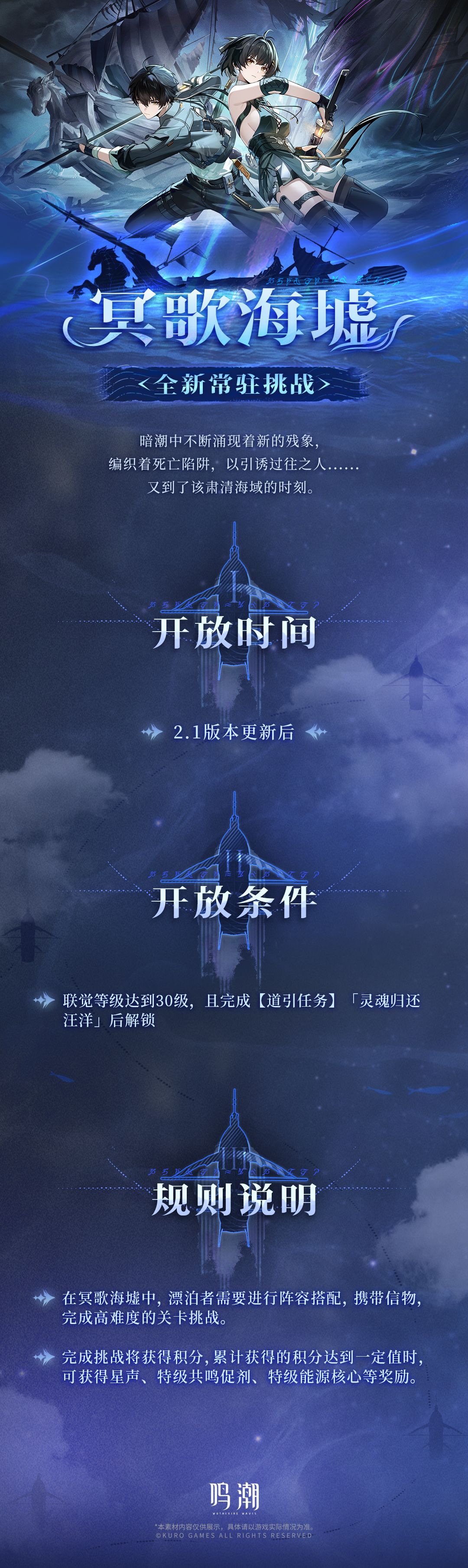 2.1版本即将上线全新常驻挑战「冥歌海墟」,漂泊者快来了解一下挑战的具体规则吧!