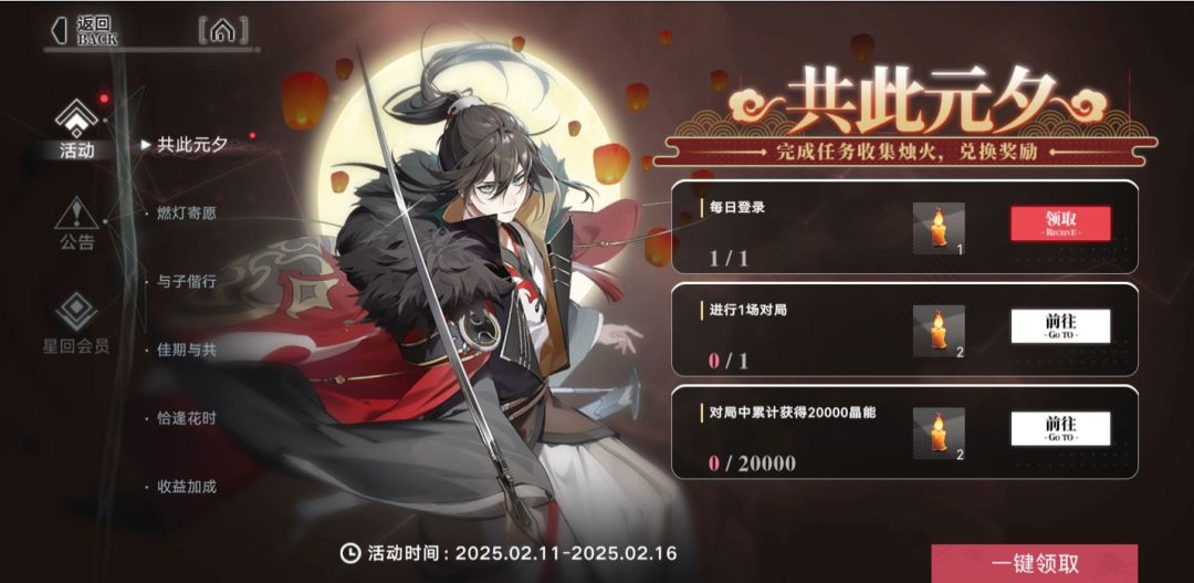 活动入口【游戏主界面】-【活动】-【共此元夕】