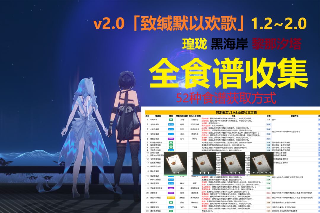 上面1.1版本食谱表格蓝色部分可能有问题,因为作者没这些角色1.1版本新增了6个食谱,2个出售食谱的商人,瑝珑目前共统计5位食谱商人,合计32种食谱。制作不易,如果对大家有所帮助的话希望能给个免费...