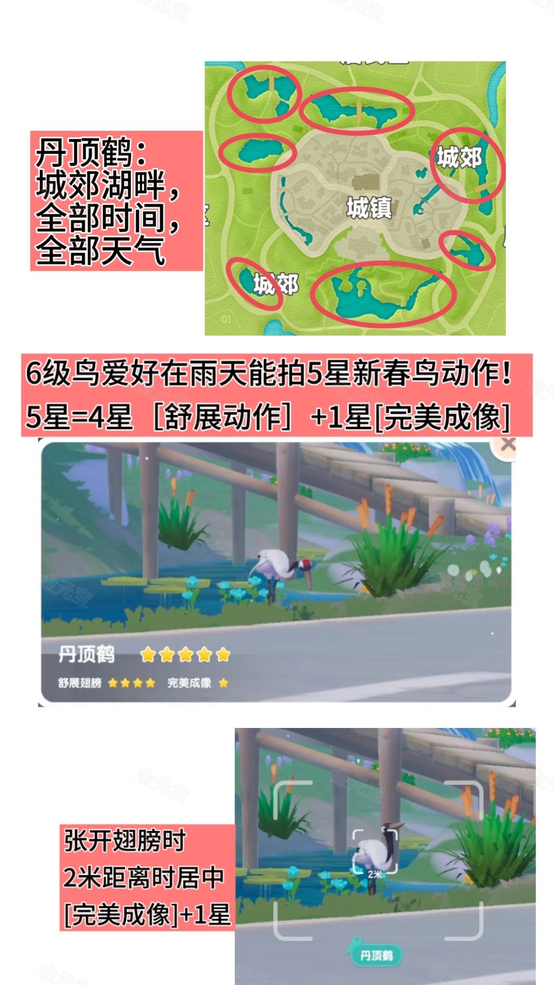 丹顶鹤:城郊湖畔,全部时间,全部天气