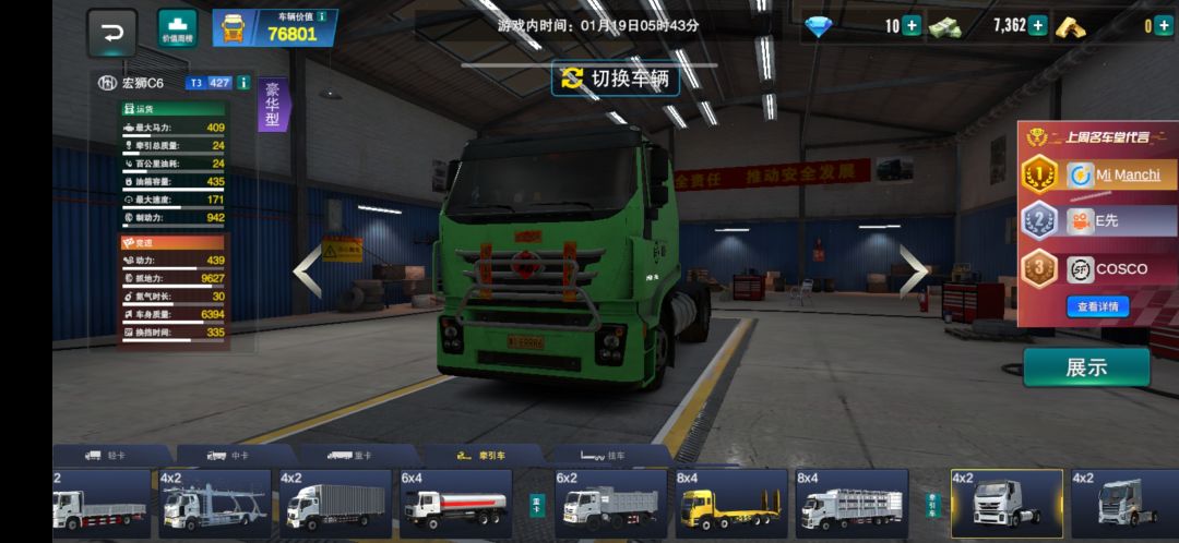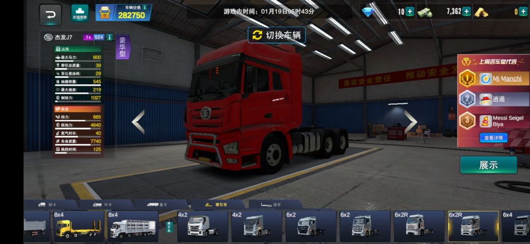 开局给的85000钞票留着不要花!先跑星选订单获得一些金条,在活动里购买:国发J6、闪龙F20、淮发K5,如果金条多的还可以买杰发J6P、杰发J7。挂车推荐:箱式、罐式、平板式,因为这三辆挂车开起来不飘。用钞票买的车推荐:柳龙H7(钞票45w或金条900)如果想要半挂但金条少的推荐宏狮C6(有一点点飘,钞票55w或金条1xxx (其它看自己喜欢哪辆)
