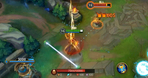 杰斯锤形态时的激进打法会使许多敌人提早撤离,但杰斯在使用Q(1)技能靠近敌方后再利用召唤师技能:闪现靠近敌方,再用E(3)技能将其敲回,就能完成留人并封住敌方的退路!