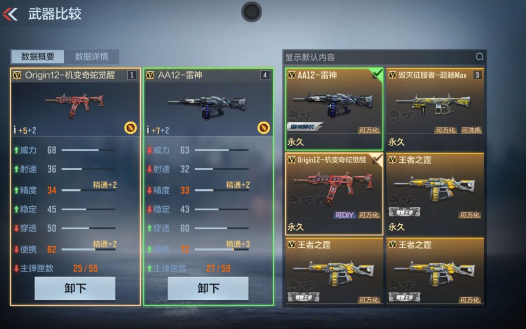 与AA12-雷神相比,Origin12-机变奇蛇觉醒虽在穿透、便携和主弹匣数方面略逊一筹,但其威力、射速和精度均更胜一筹。尤其是其高弹丸数量和高射速的组合,使得玩家在近距离作战中能够迅速清理敌人,占据绝对优势。