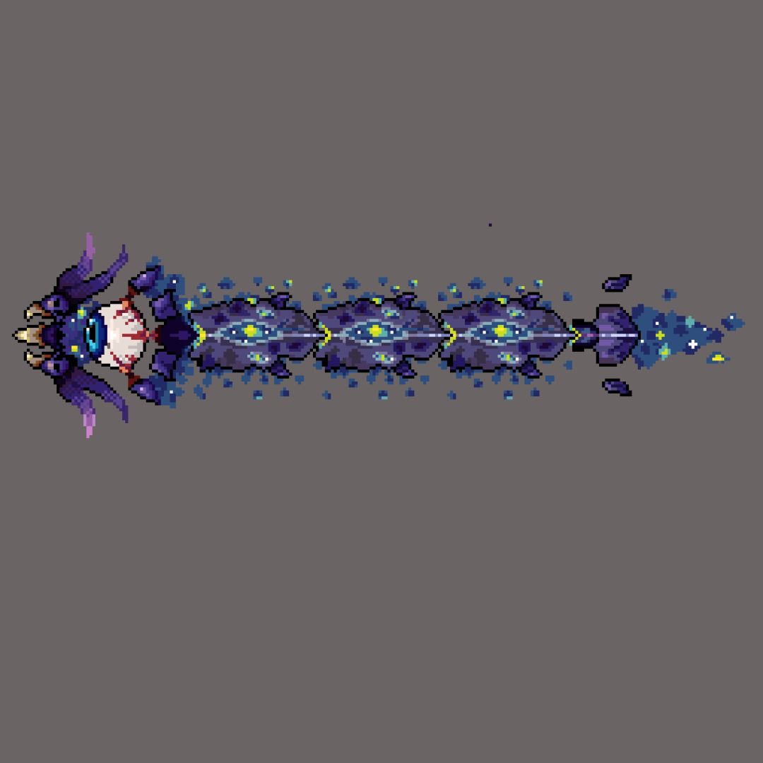 星渊游荡者的体节血量不计入总血量,这意味着想要击败它就必须杀死它的头部。若星渊游荡者其中一节体节死亡那么后面的体节会转变成为星渊蛀虫,星渊游荡者最后一节体节转变为尾部