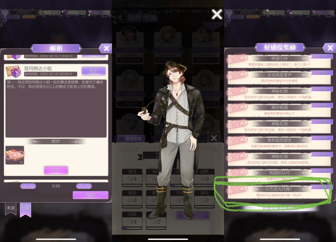 所以在前期兑换舞伴时可以先考虑多样性尽量不要选择重叠属性的,⚠️注意势力和家族(贫民窟、天空教会、佣兵团、萨坎家族等等)/⚠️偏好(军事、商业、神秘等)/⚠️属性(活泼、高贵,保暖等等)……