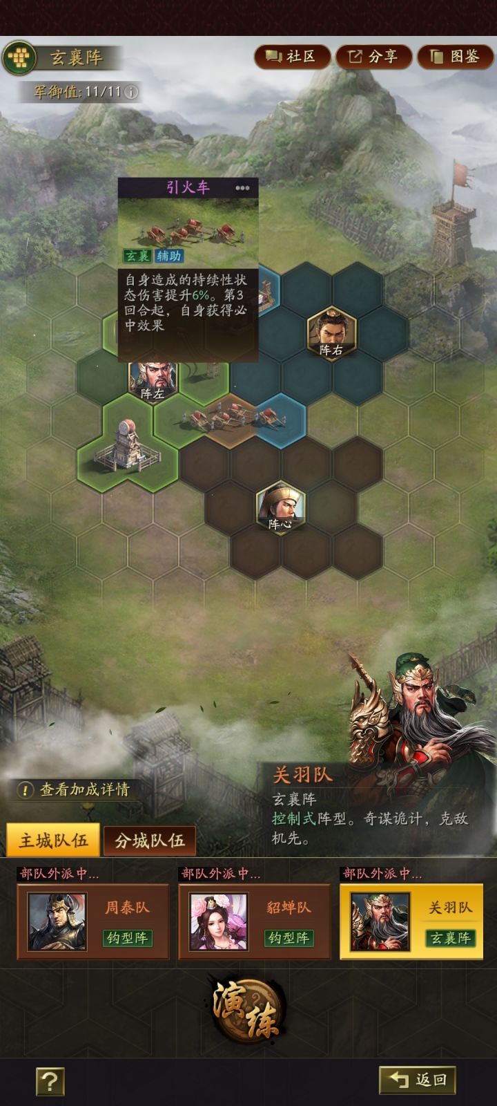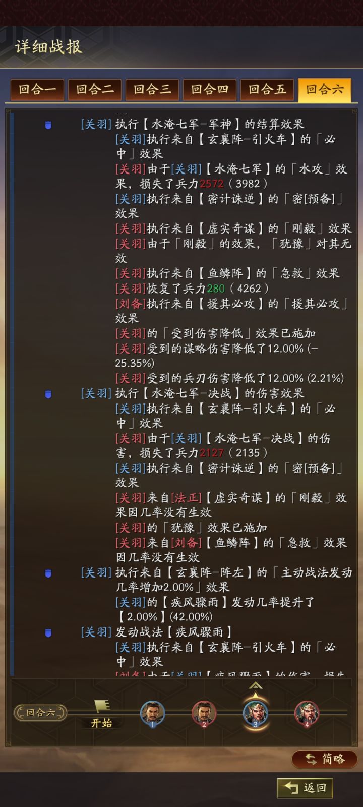 引火车三回合开始获得的必中效果,对sp关羽输出至关重要。能无视鱼鳞阵第三回合给的抵御效果,无视第六回合的桃园缘分,无视蓄势待发1-2人的高额闪避。