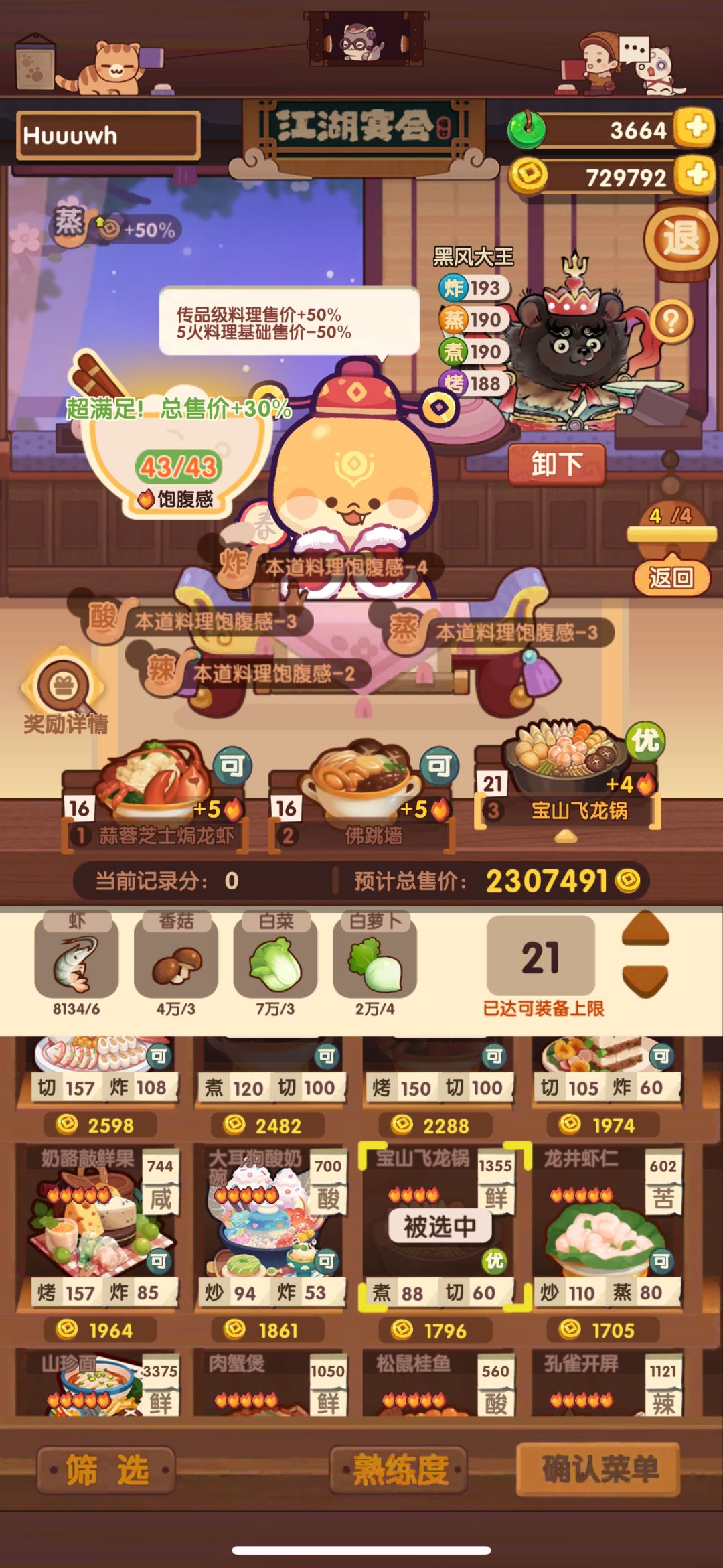 也很正常,毕竟最后一轮,菜厨只是游戏一部分,还有修炼,遗玉,调料。