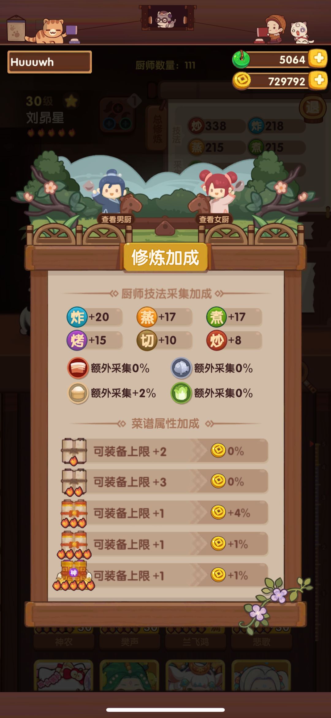 这是休闲游戏,要考虑自己玩了多久,菜厨情况,修炼情况,爆炒还算是良心的,别的游戏哪有进度不及百分之20的人就能全满的![[表情_捂脸哭]](https://img.tapimg.com/market/images/83aa452eea88b5c64df710bca367b7e9.png)
