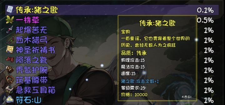 第一次发文,没找到文字后面插入图片。说下成果,挂机一晚上收货7个猪之歌,平均一小时一个。最后祝大家直接上货。