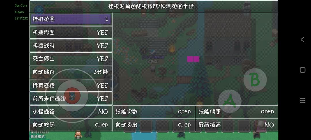 我的挂机设置——(图片),可直接看图设置。把范围调为1,稀有和前所未有设置yes逃跑,小怪No,小怪才掉落猪之歌提升效率。战斗设置里面打开—关闭掉落动画,关闭死亡动画(避免掉落物太多卡顿)。关闭抓闪光宝宝—主要是晚上挂机用,抓闪光宝宝也可以用这一套设置,打开抓闪就行。最重要的是:要存档、存档、存档,老迈的游戏最重要的就是及时存档。在挂机设置中把存档时间设置为3min,实测下来存档时间有点飘忽,大概是10min左右存档。