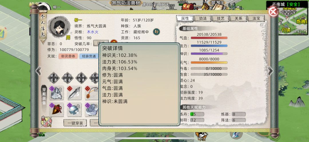 月卡党筑基1重修,32+10共42功德,零氪党筑基6重修不用突破