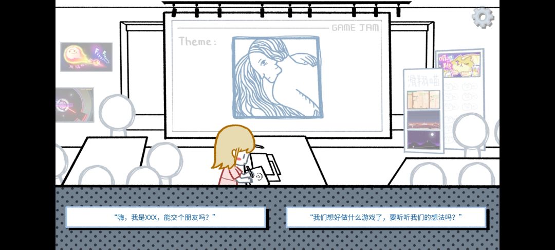 出于游戏礼貌,我肯定会选自我介绍,但是现实里我应该这样做:观察对方在做什么,完成了什么,对方涉及了什么领域,然后以“你画的xxx好好看”,“你制作的xxx是不是用了xxx,我好喜欢xxx”,“xxx真不错”之类开头,对于不了解的才会正式自我介绍,这一点我半认可游戏,因为是游戏的限制。
