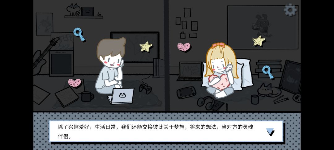 游戏是有提示的,但,现实没有,游戏里提示“找到能够挑起话题的东西”,现实呢?现实只能对对碰,用天南海北的话题来期待匹配到契合的火花。