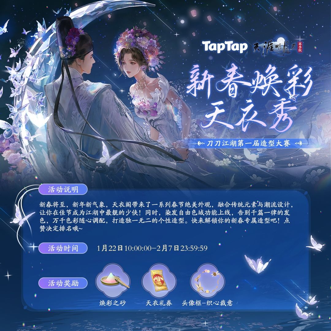 最后,再次感谢所有参与活动的少侠!你们的热情参与,让这个春节的江湖更加绚丽多彩!天衣阁将持续为大家带来更多精美外观和趣味功能,刀妹也会为少侠们带来更多展示创意的活动与机会,敬请期待哦~