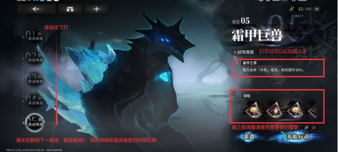 开放难度5徽章刷取副本时可适当刷取一套适合自己队伍角色的四星徽章,该阶段对于徽章的要求只是主词条正确且副词条强化并未全歪(强化错词条)即可,对【完美胚子】或【毕业徽章】的需求停留在有最好,没有也无妨的阶段(往下一阶段过渡的时期也能适当提升一下角色徽章的质量,根据自己需要来就行)