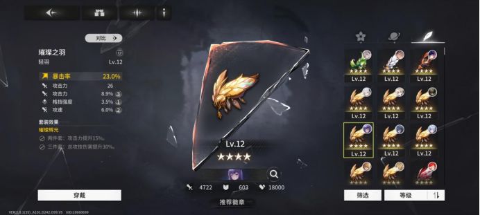 羽毛主词条:暴击率(求稳)、暴击伤害(凹分)、攻速(部分享受攻速加成角色没其他可选时的无奈选择)