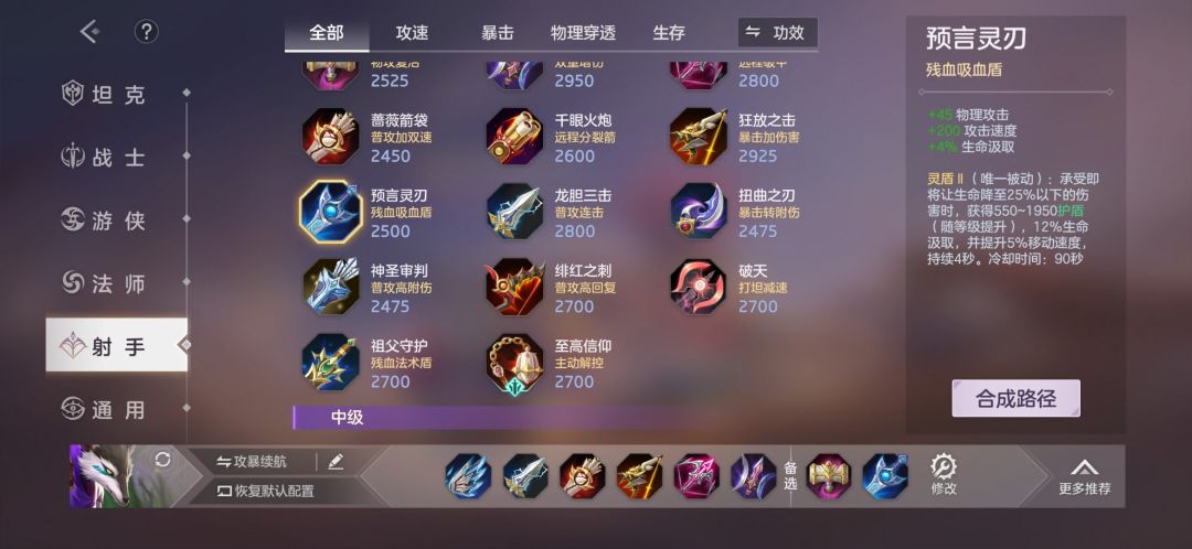 预言灵刃:攻击力、攻击速度、生命偷取、护盾——提高续航和容错