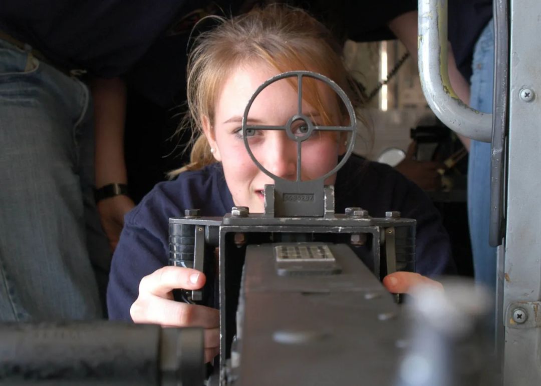 一名加拿大皇家海军学员通过机枪瞄准器观察