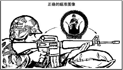 射击时,射手通过眼睛、照门、准星三点一线来瞄准目标,使准星位于照门中心并与目标对齐,从而确定射击方向。