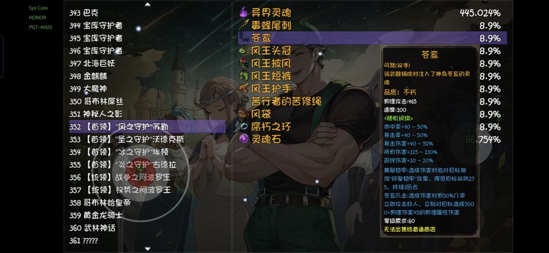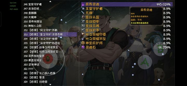 到了天帝宝库也挺无奈的,强度一下增加很多,这时候就要提升奶妈的抗性了,55级深渊的狂想之笛,50级深渊的老树盘根、呼神护卫,45级深渊黑暗幽光,45级普通护甲25所有抗性,护身符最高刷到一个15所有抗性,这也就100了,基本就可以畅刷天帝宝库了,毕竟奶妈他打不动了,前期没必要刷神秘人,直接刷三个宝库守卫者,每一把怒刷3灵魂石(主要是关羽的鬼龙闪和青龙偃月斩伤害,格拉海德的至圣斩和至圣斩伤害,或者猴子的横扫千军次数和伤害)一个天灾猴子稳定一波1e+鬼龙闪关羽一波1e(其他的英雄喜欢的装备多了都可以试试,反正有灵魂石,如果有更厉害的也可以分享),其他boss除了神秘人都可以刷。玄女套装和锡杖出了就可以怒刷60王之遗迹,只需要出了第一个boss的弓给关羽,后面的boss轻松怒刷。
