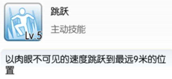 机动性技能+保命技能,因为符文加成跳跃后最多有3秒的免疫物理和魔法伤害的buff,使得琦玉可以多样性的使用此技能,技能在PVE中通过卡时间跳跃躲避致死伤害,也能在PVP中快速突进到敌人身边击杀对方或者快速脱离战场使用。
