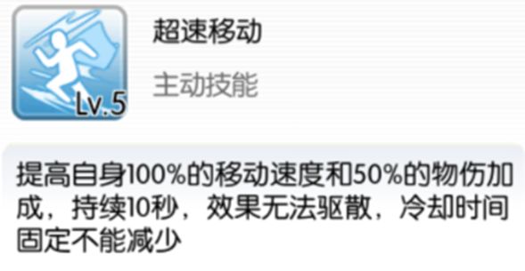 核心输出增益技能,提升100%移速和50%物伤,无论是PVE还是PVP都是不能断的buff,不过buff持续时间只有10秒、冷却时间需要25秒。因此需要选择合理的释放时机才能最大化享受到增益。