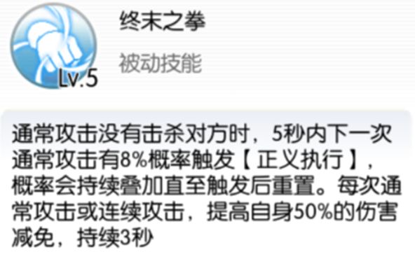 对于PVE:自动技能栏可以放连续拳、正义之拳和通常攻击,被动触发正义之拳且不占CD,可以提升一些DPS和生存能力。