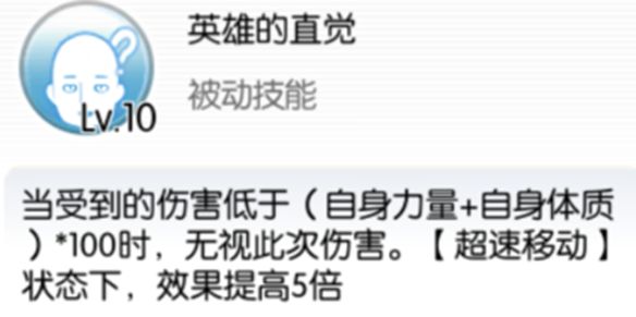 以500力量250体质为例,此被动对于 750*100=75000以下伤害会完全抵挡(无视伤害,也不会受到相应伤害的debuff影响),超速移动状态下这个伤害阈值提高为5倍(375000)。无论是PVE还是PVP只要对方的伤害不足都会被琦玉无视,所以很多PVE副本琦玉都可以站撸不掉血,同样道理PVP时琦玉通过堆高此阈值也能做到万花丛中走、片叶不沾身的效果。可操作的方法举例:龙妈挂件跟随增加全属性和减伤;十字军转移力量;舞娘转移力量体质;