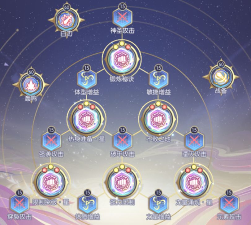 只玩PVE则选择大型增伤4%记忆(3个总计20%),如果兼顾PVP则选择力量达到240后物理伤害+3%记忆(3个总计15%),正义执行无视物理防御并不满足忽视防御记忆的达成条件,实测增伤很小不推荐。