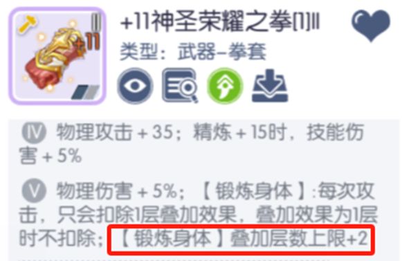专武V级:锻炼身体层数增加2层,也就是一次锻炼身体可以叠加5层,提升:250体质+250力量+100%物伤/魔伤减免。这里有个技巧就是PVE时可以先准备一个白板专武V级,切专武后锻炼身体,获得5层增益后再切回泰坦。