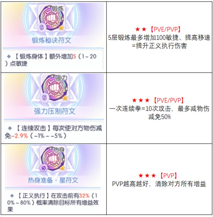 【热身准备.星】主要用于PVP,如果玩PVP则需要将符文数值刷越高越好。