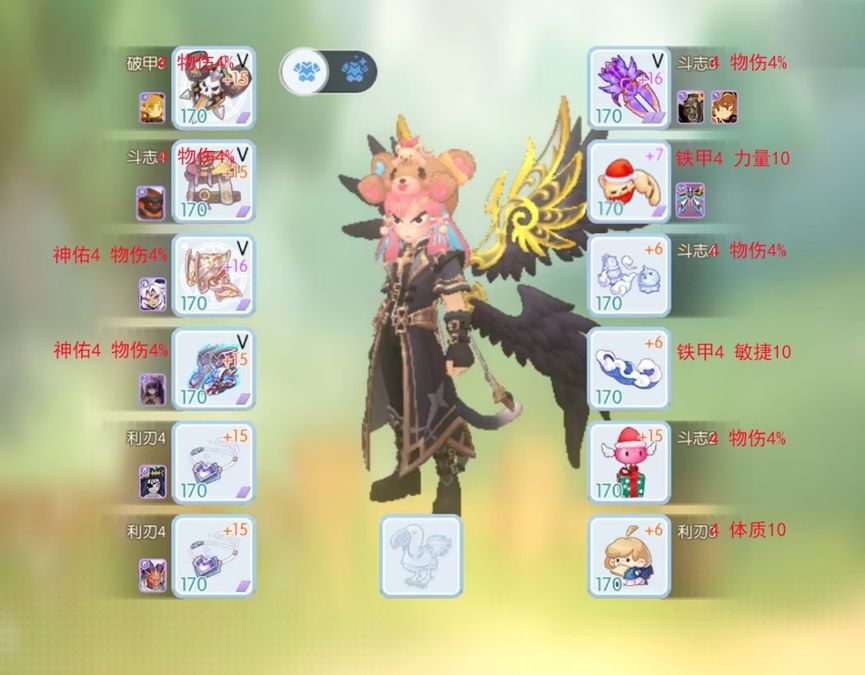 主打属性攻击,则可以盔甲换成【彼岸巡行者】随机属性:风地水火无攻击+20%,副手卡和盔甲卡换【雷神卡】、【猫神卡】,饰品使用水远古/火远古,对应影子使用【焰翎】、【灵泉胸针】。