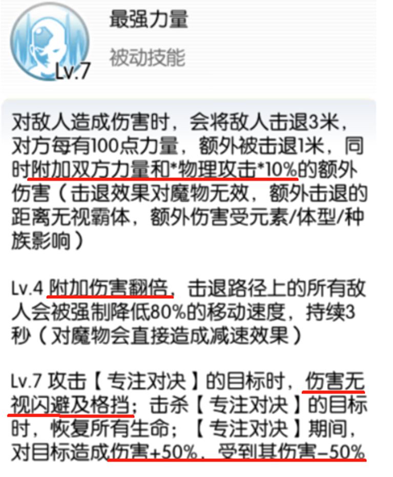 最强力量:附加伤害翻倍,对决目标增伤50%+受到其伤害-50%。MVP BOSS都能进行对决,相当于增伤+50%,而且这个对决增伤只有自己可以享受到,不用像天怒、卡卡、白星等担心敌人也能吃掉增益。