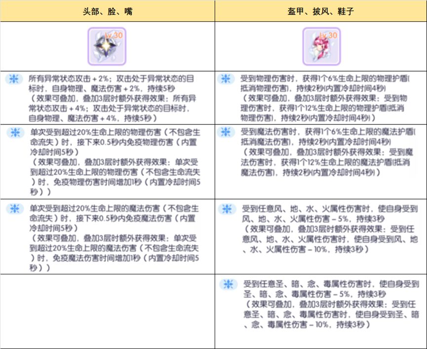 推荐物理免疫/魔法免疫,具体使用哪种依旧根据敌人主c职业搭配。GVG兼容的话可以选择和盔甲披风鞋子的记忆相反即可,同时兼顾物理和魔法伤害。