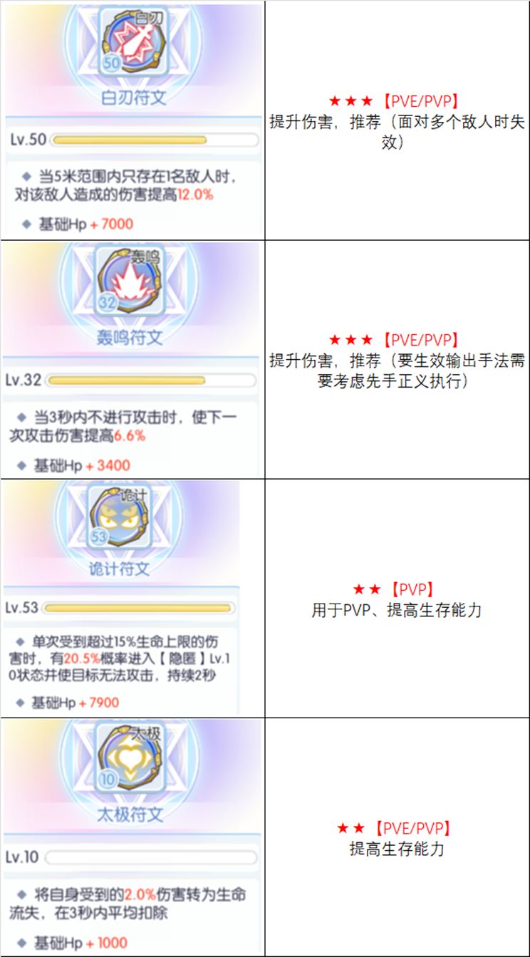 琦玉符文主要分两类,一类提升技能伤害,一类对伤害有影响但主要是提供生存能力。
