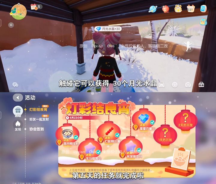 第五天谜面:雪覆石崖山,找到泡泡可获得30个月光水晶。