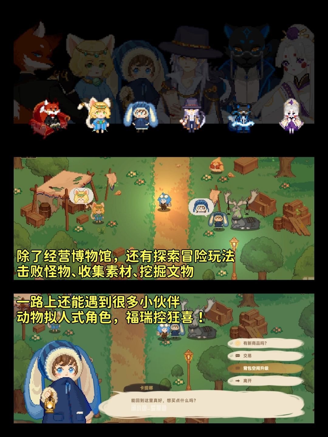 ✨肉鸽冒险:闭馆后外出探索,击败怪物、获取素材,丰富馆内藏品;开启文物支线、独立副本,深入探索文物背后的秘密。