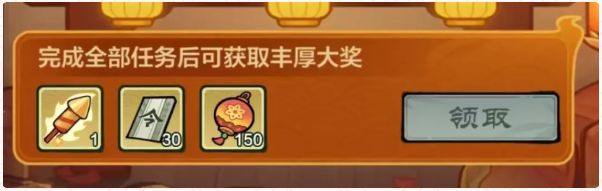 完成全部任务时,即可解锁终极大奖。其中包括:[武器皮肤-爆竹声中一岁除]、[招募令*30]、[元宵花灯*150]。
