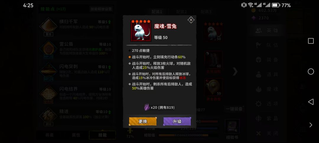 - 魔魂:主魂雪兔,随机3火球+任意2个直接伤害。
