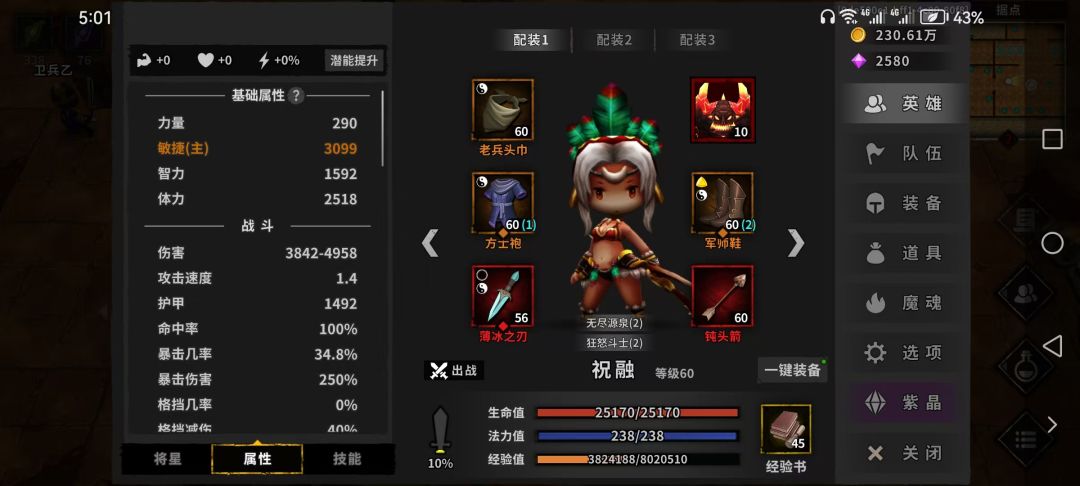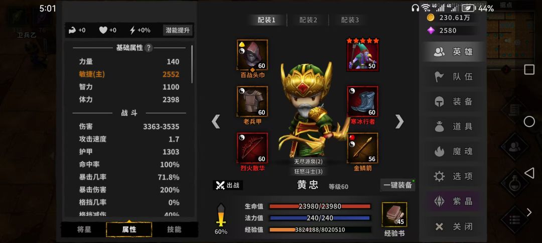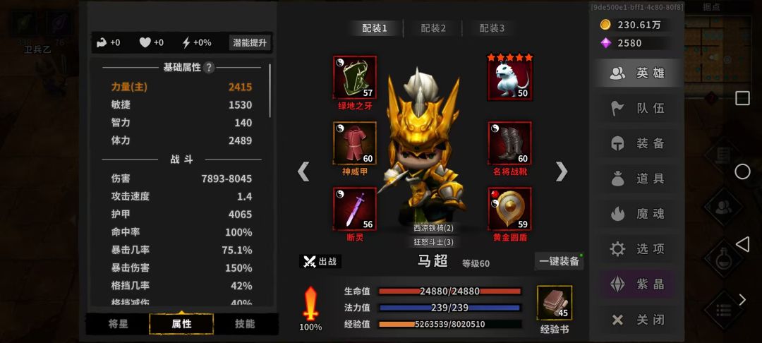 - 毕业面板:狂怒斗士(3)+西凉铁骑(2),8点攻怒,10点暴怒,70%暴击率