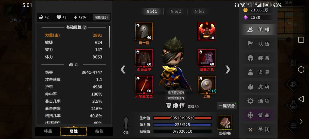 - 阵容初步成型后,永夜40层。装备+甄姬成型后,永夜60层,不过Boss需要夏侯惇慢慢砍。