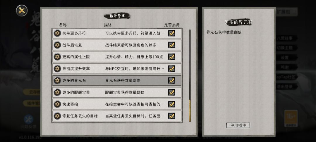 第一步先开插件,不然没登仙境界元石