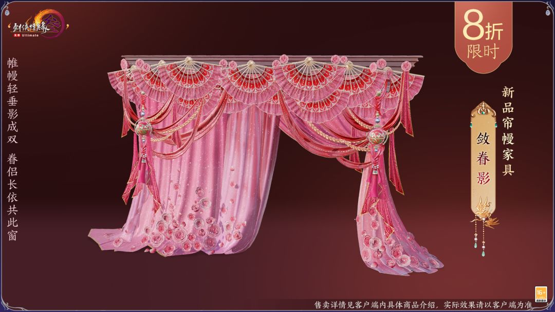 更有新品帘幔家具“敛眷影”同步上架,一帘幽梦,情谊盈盈。往期家具同步返场,八折限时优惠助你打造浪漫宅院!