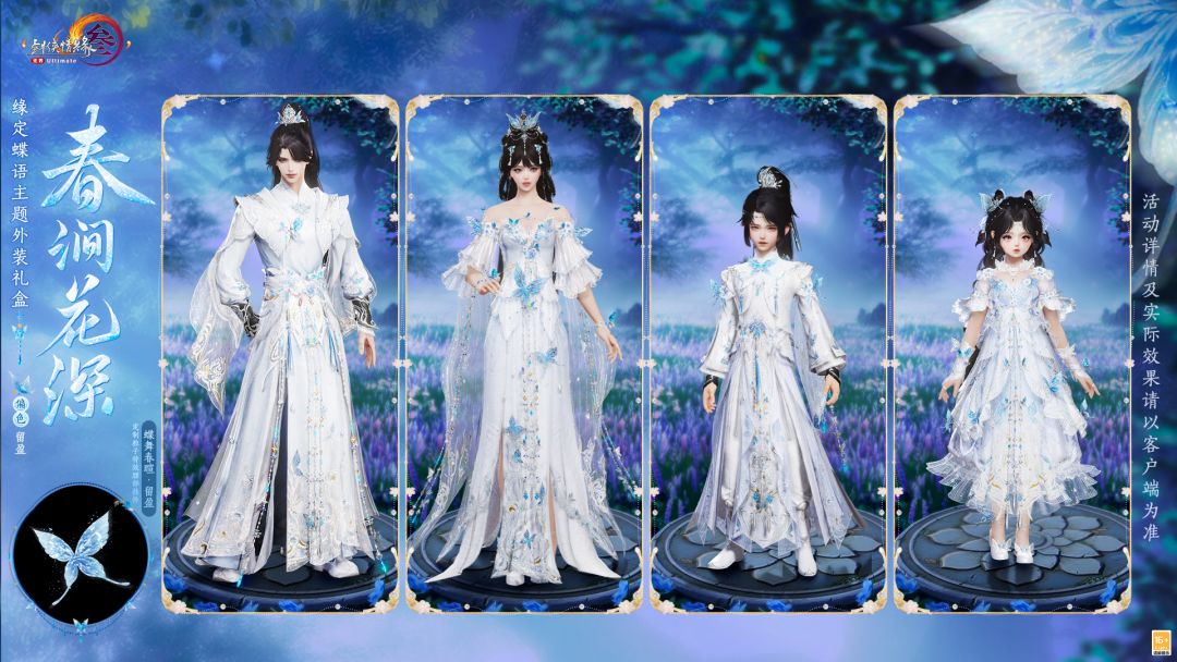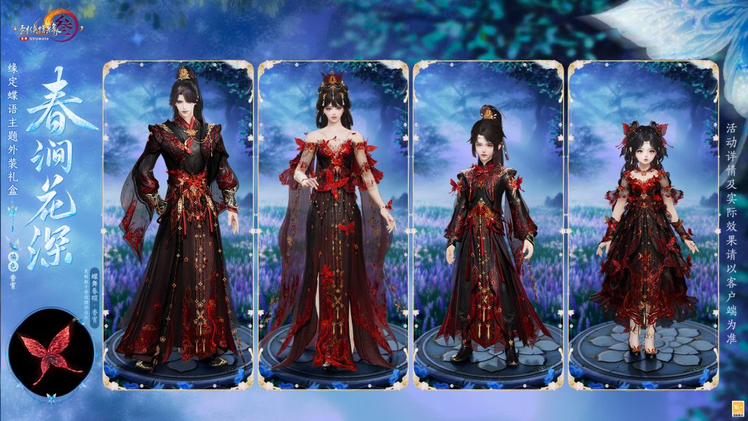 锦街天陌,执手行歌,花影婆娑,缘定蝶语主题外装礼盒“春涧花深”承载情深意重。外装上绣蝶飞花舞,轻纱似梦,犹如晨曦初照,山涧之畔,一抹春色正浓,充满温馨与甜蜜。