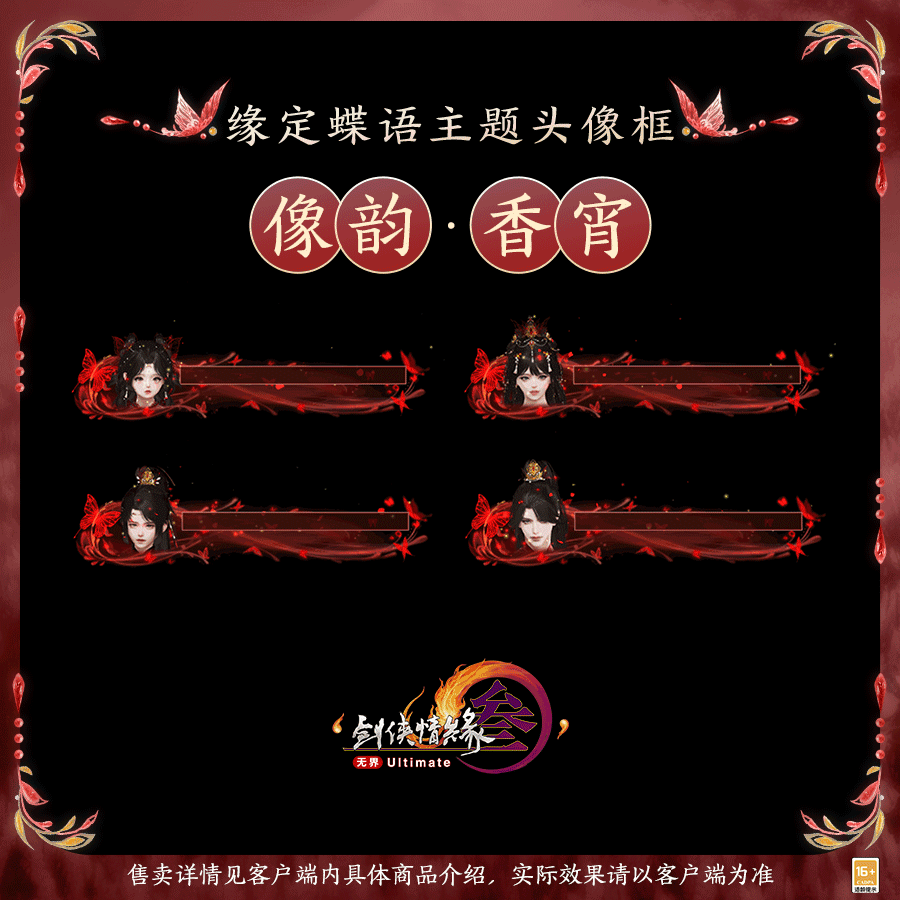 此外,缘定蝶语主题头像框“像韵·留盈”与“像韵·香宵”蝶舞随香,翩跹花间!情意盈盈,蝴蝶羽翼悄然颤动,扬起尘光数点。