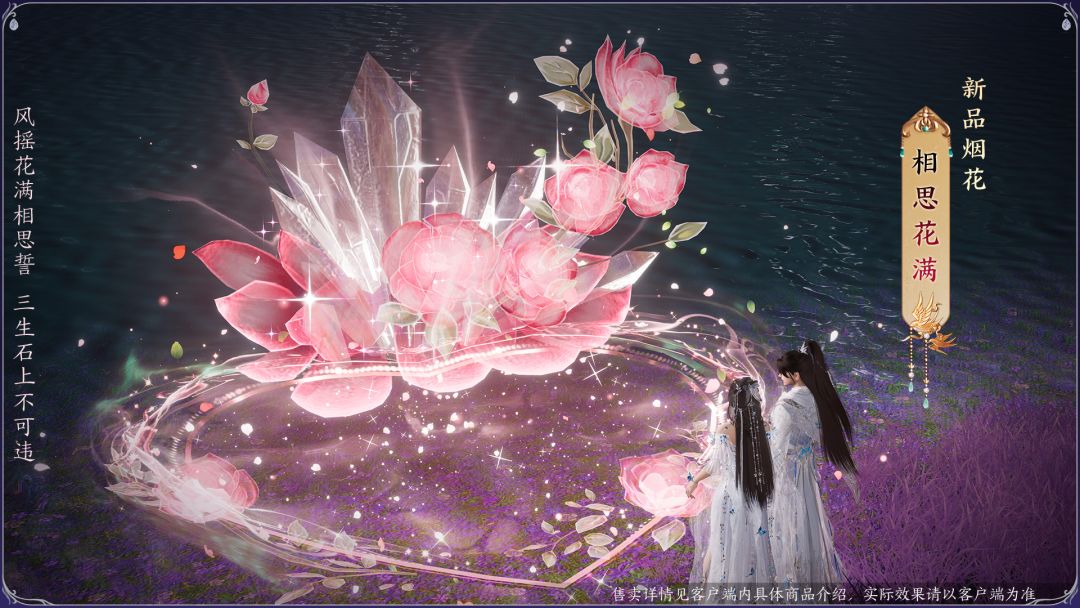灯树千光照,花焰掐枝开,全新烟花“相思花满”登场,璀璨烟火映照人心欢跃,相思团圆。