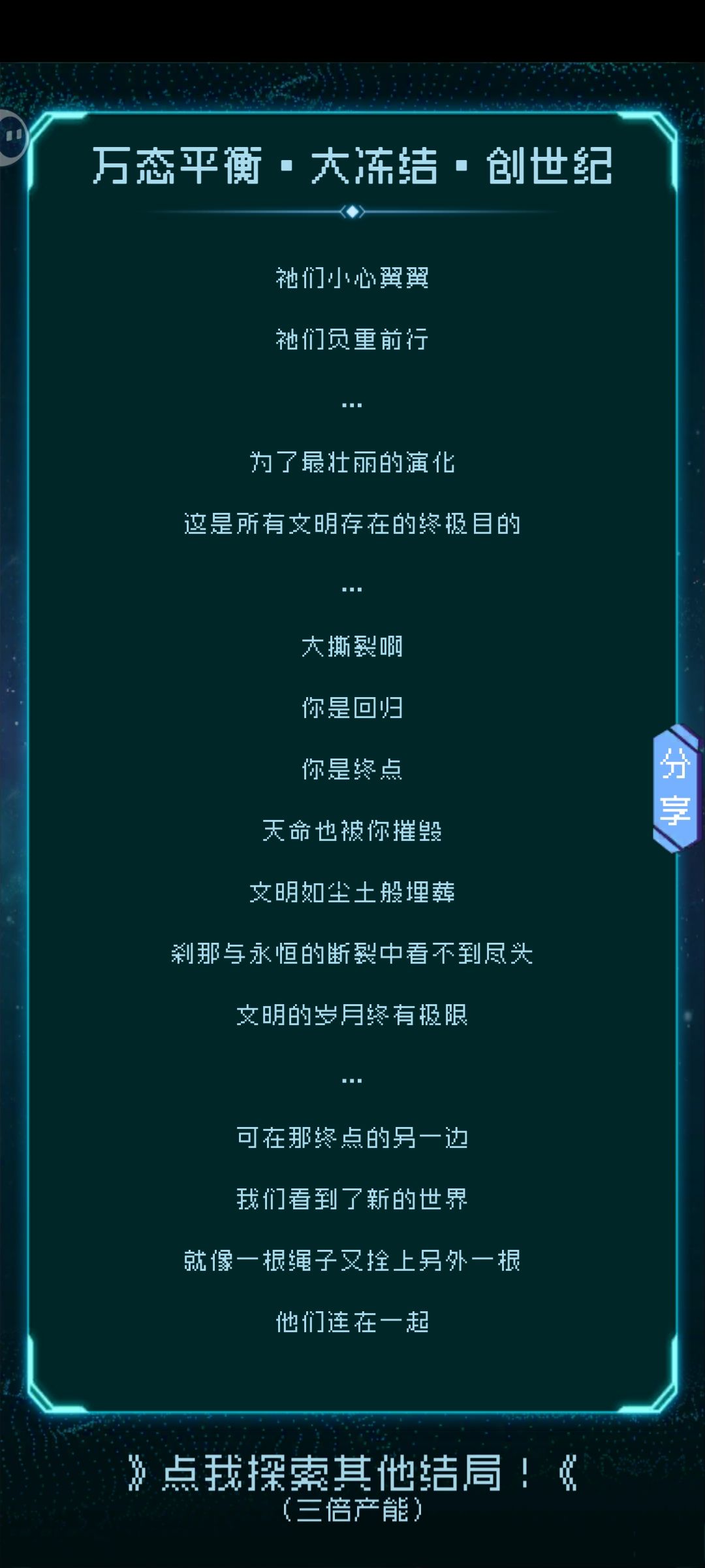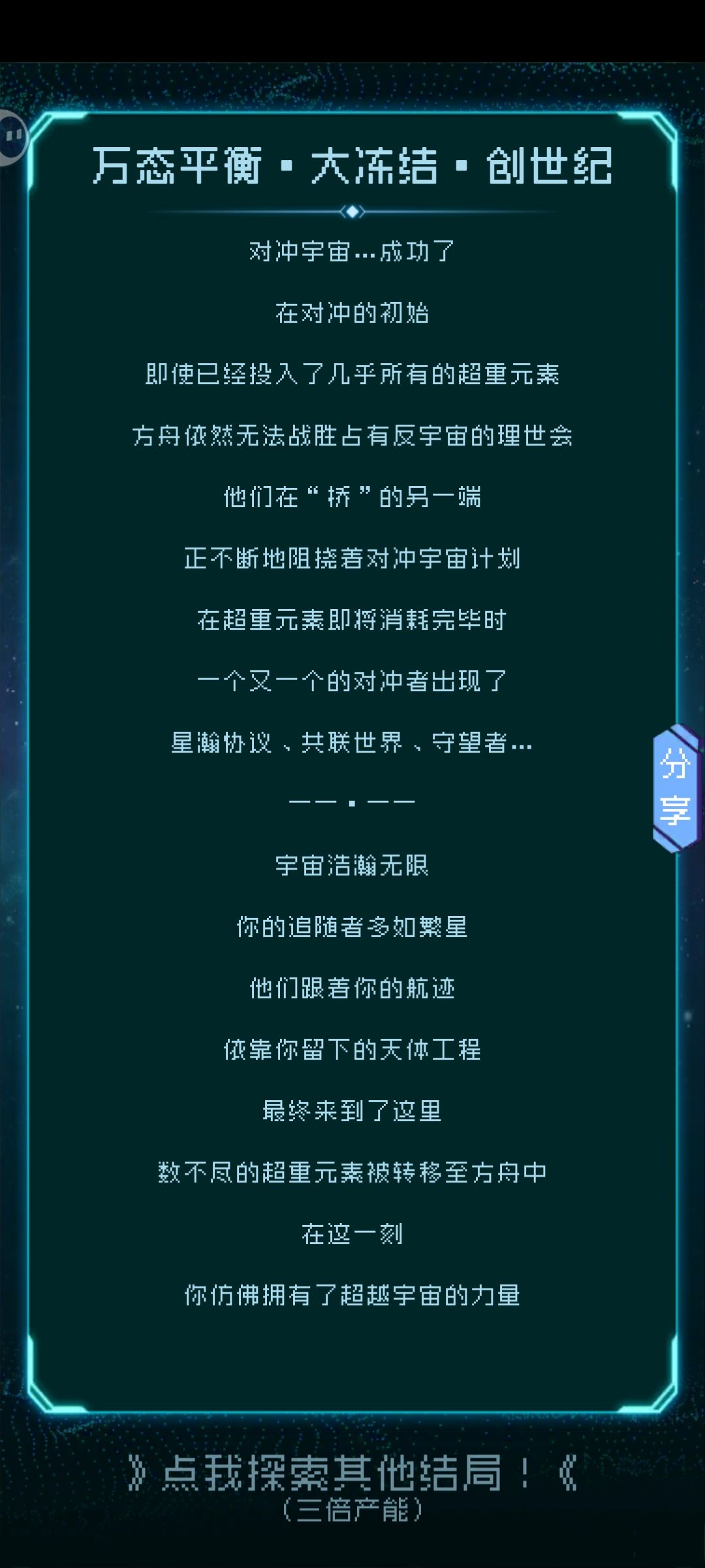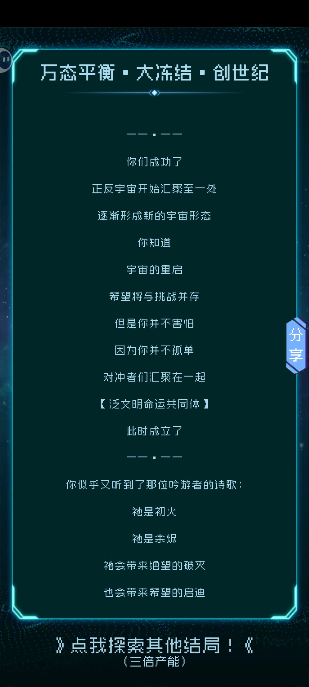 自回归逐光以来的第一次(或者再一次)达成了创世纪结局。